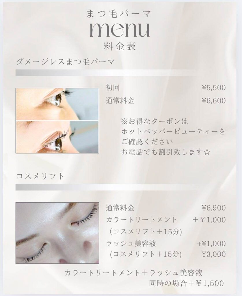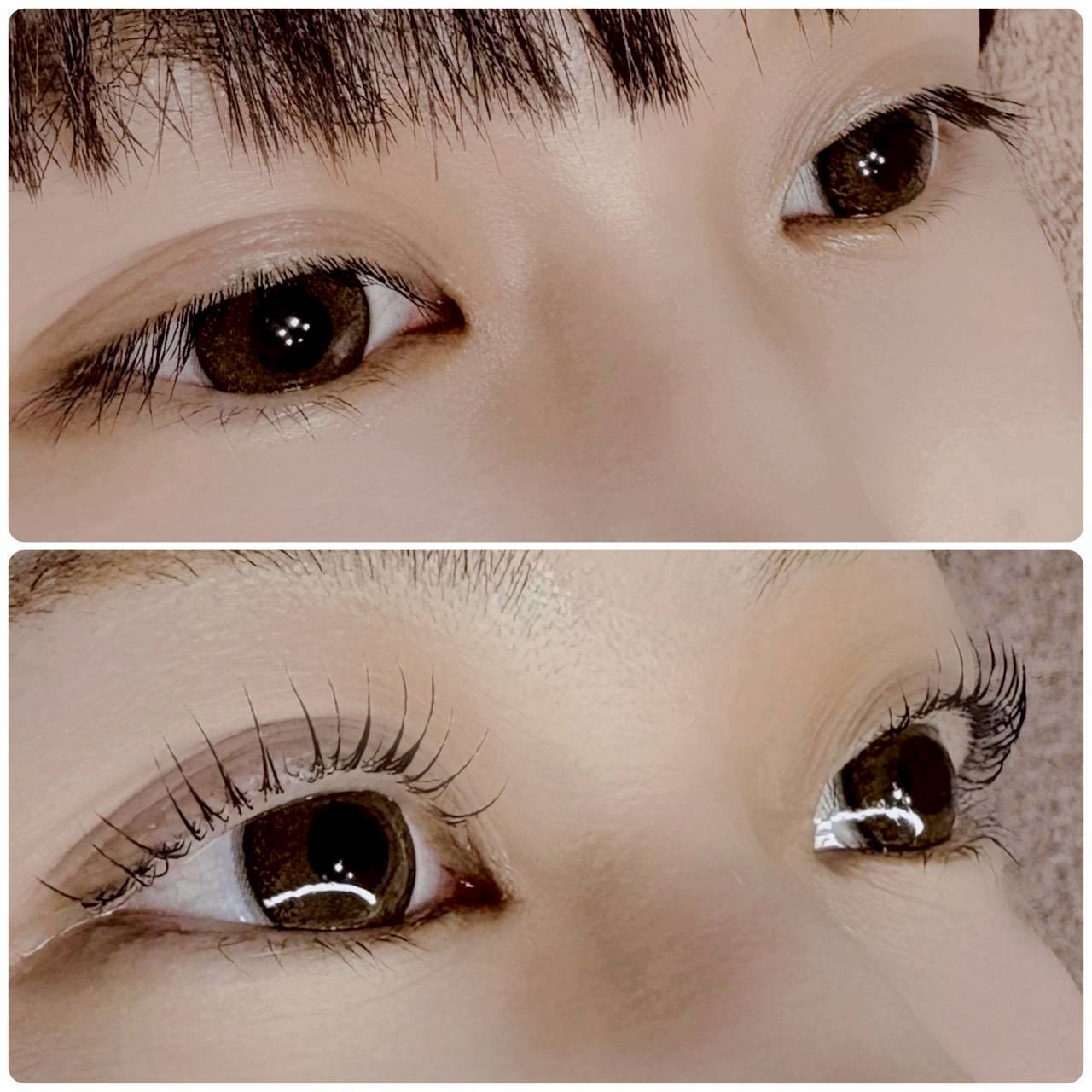 ダメージを抑えたまつ毛パーマと、化粧品登録商材を使用するコスメリフト。